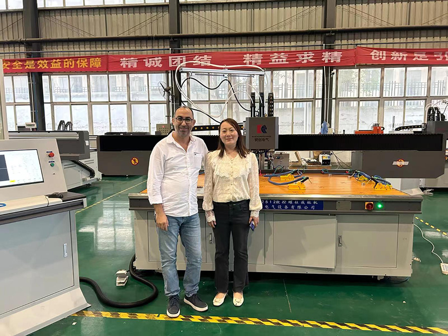 考察數(shù)控設(shè)備,對工業(yè)機器人的興趣是百分百,對新能源產(chǎn)業(yè)也是流連忘返,在我們準備發(fā)貨的設(shè)備前面不走了,一定要拍照留念,讓我們的銷售人員細心介紹每款產(chǎn)品的功能。